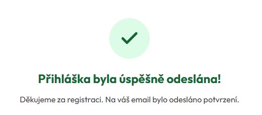 Po úspěšném odeslání dotazníku uvidíte na obrazovce zelenou "fajfku" s textem: