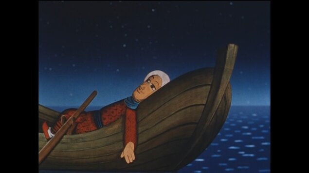 Námořník Sindibád se vydává na plavbu, během které zažije neuvěřitelné příhody, pozná cizokrajné země a nejednou přitom musí překonat různé nástrahy. Protože je ale hodný a dobrý mořeplavec, moře mu vždy pomůže. Když už pluje tolik dní a nocí, že je nedovede ani spočítat, posádce ubývají zásoby i síly a naděje i pevnina jsou ztraceny v nedohlednu, usměje se na Sindibáda štěstí. V noci v jeho síti uvízne velká ryba, která na něj promluví lidským hlasem. Slíbí mu, že když ji nechá plavat, bohatě se mu odvděčí. Jak řekne, tak udělá a odmění se svému zachránci náhrdelníkem tak krásným, až zrak přechází. A oči se rozzáří i jeho druhům, když ráno procitnou a v dálce před sebou vidí rajský ostrov. Záhy se však ukáže, že i ten v sobě ukrývá nebezpečí.
