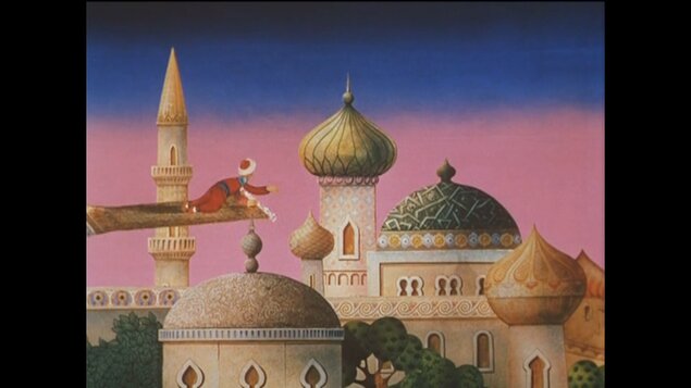 Další kroky zavedou Sindibáda až k sultánovi, který ho obviní z krádeže šperků, a jisté smrti unikne jen o vlásek. Tím ale jeho útrapy zdaleka nekončí. Čeká ho setkání s lidožravým obrem, zlomyslným staříkem, proletí se na létající koberci, nedopatřením vypustí ze džbánu kouzleného džina a nakonec najde i opravdovou lásku. A pochopí, že i leccos zlého může být pro něco dobré a že nejkrásnější střechu na světě nemá zlatý palác, ale je jí modré nebe.