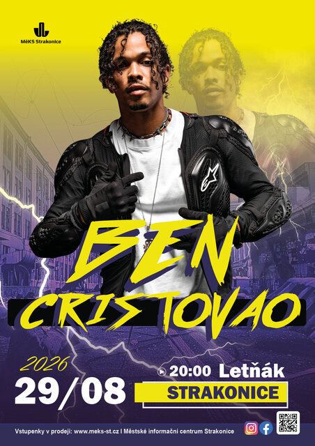 Ben Cristovao vystoupí v srpnu 2026 v letním kině ve Strakonicích. Buďte u toho! Vstupenky můžete pořídit už nyní, třeba jako skvělý dárek pod stromeček.
