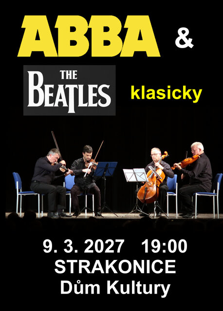 Koncertní agentura FIDELIO, s.r.o. (www.fideliokoncerty.cz), pořadatel koncertů různých žánrů s více než 20 letou tradicí vás zve na krásný koncert plný hudby od světoznámých skupin ABBA a Beatles - aranží pro Klárovo smyčcové kvarteto, které zkomponoval pan Tom Klár (působil dříve mj. jako I.houslista orchestru Národního divadla v Praze).