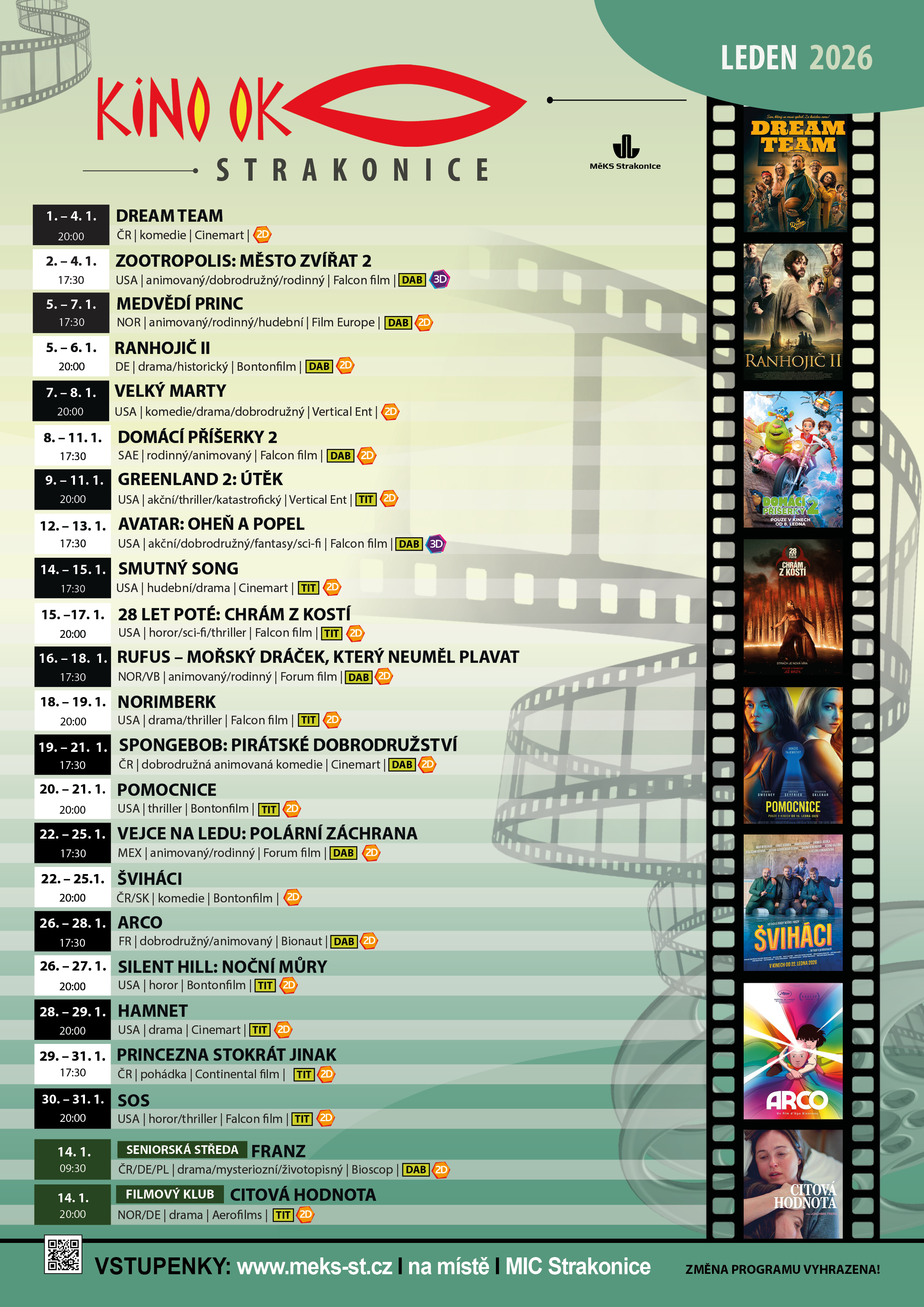 Kino Oko >>leden 2026<< KULTURNÍ AKCE >>leden 2026<<